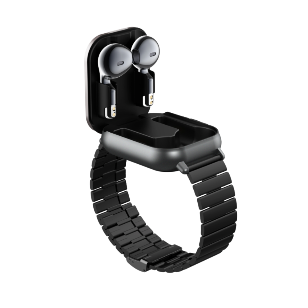 El D8 PRO lleva la innovación a otro nivel. Diseñado para hombres que viven con ritmo, combina un smartwatch de alto rendimiento con un par de auriculares inalámbricos integrados, todo en un solo dispositivo. Perfecto para quienes entrenan, trabajan o viajan, sin cargar con más accesorios de los necesarios.